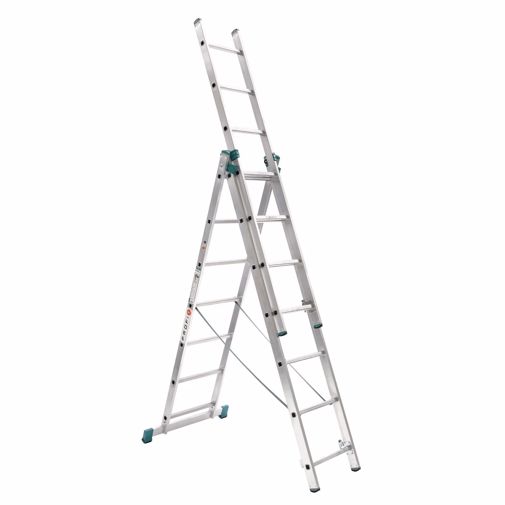Mitmekülgne kaheosaline alumiiniumist redel, mida saab kasutada nii A-kujulise harkredelina kui ka lükandredelina.