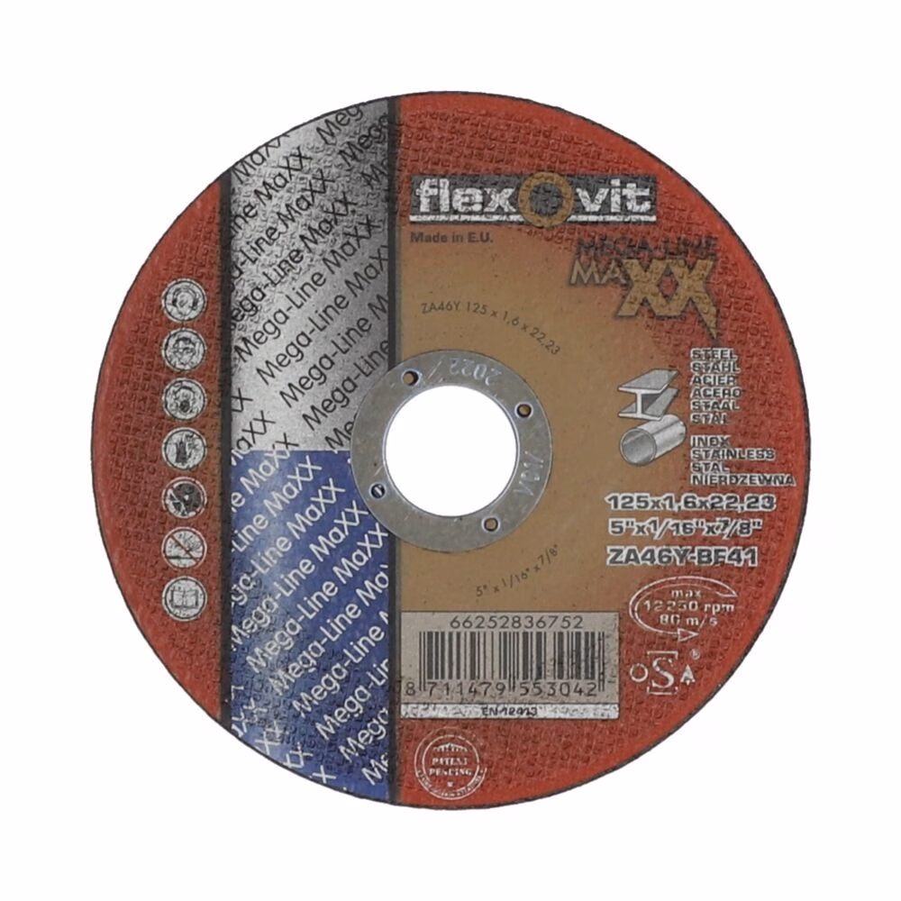 Flexovit Mega-line MAXX seeria lõikeketas kasutab teravat tsirkooniumoksiidi tera, et lõigata puhtalt ja kiiresti läbi terase ning roostevaba terase (inox), suurendades seeläbi tootlikkust. Selle õhuke 1,3 mm profiil on ideaalne suurema täpsuse saavutamiseks keerulistes töötingimustes. Ketta spetsiaalne side tagab väga stabiilse ja madala vibratsiooniga lõike kogu tööprotsessi vältel.