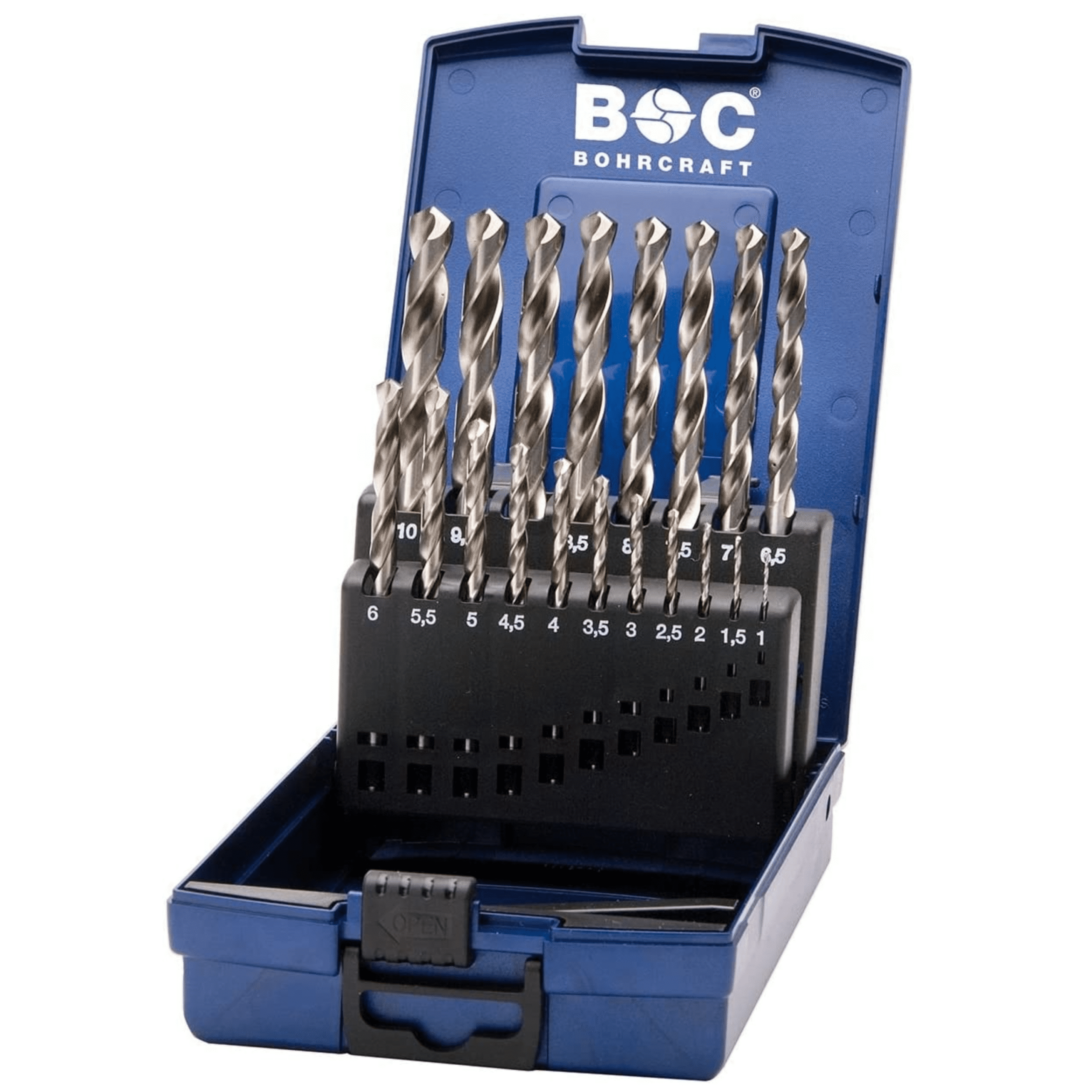Metallipuuride komplekt HSS-E, DIN338, (Co5%) 19-osaline, plastkarbis: 1,0-10,0 mm.