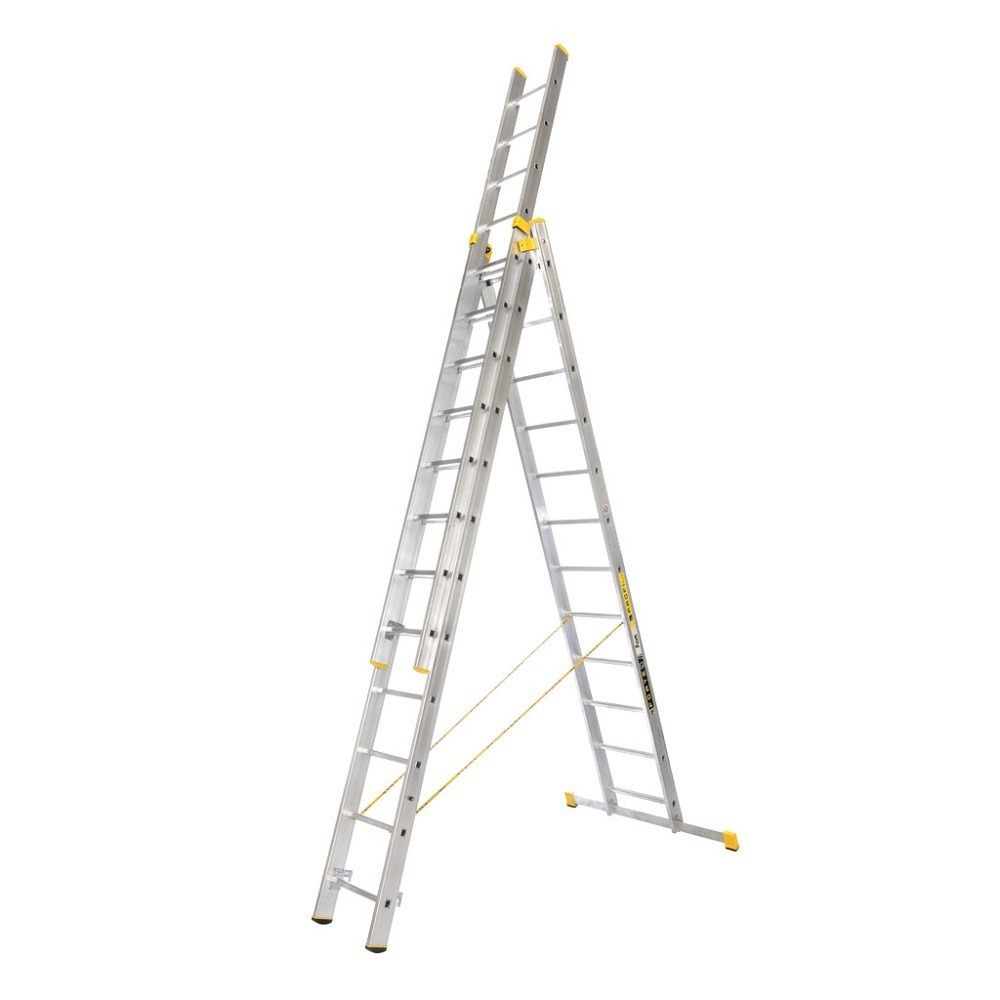 Eriti mitmekülgne kolmeosaline alumiiniumist redel professionaalseks kasutamiseks.
