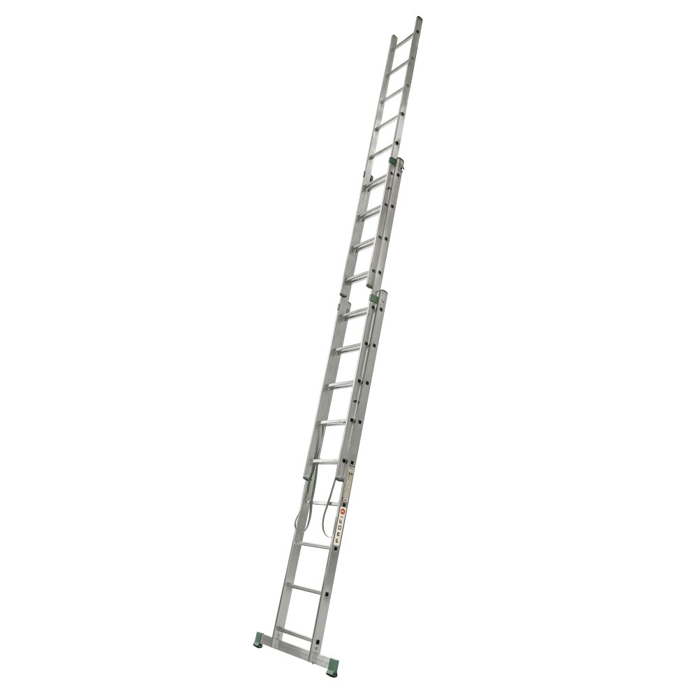 Eriti mitmekülgne kolmeosaline alumiiniumist redel, mida saab kasutada A-kujulise harkredelina, pikendatava tugiredelina ning mille ühe osa saab eemaldada eraldi tugiredeliks.