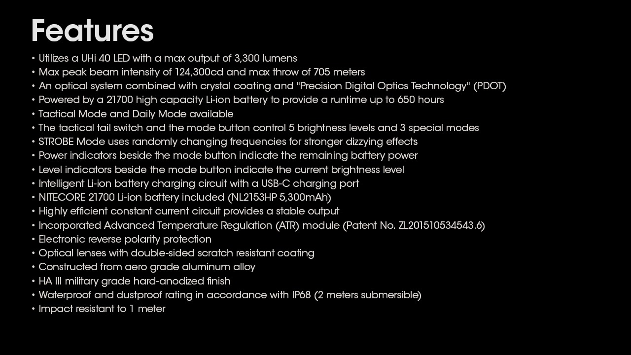 Taskulamp Nitecore MH25 Pro. 3300lm valgusvihu ulatus kuni 705m. Laetav USB-Cga. IP68.