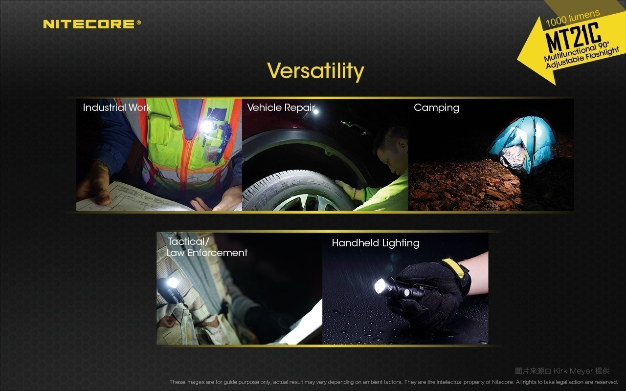 Taskulamp Nitecore MT21C 1000lm, valgusvihu ulatus kuni 184m. Reguleeritava nurgaga. IPX8.