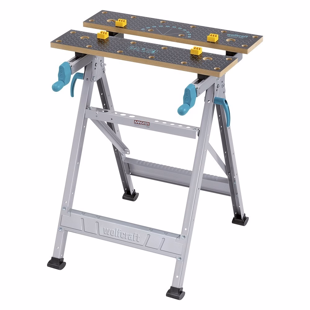 See kokkupandav töölaud on asendamatu lahendus montaaži- ja remonditöödeks, mis nõuavad tööpinna ajutist püstitamist väljaspool statsionaarset töökoda. See lahendab raske ja ebamugava töölaua transpordi probleemi, olles samas üllatavalt kerge (4,5 kg) ja kompaktne. Paksust MDF-ist valmistatud tööpind koosneb kahest osast, mis toimivad kruustangidena, võimaldades töödeldavat detaili kindlalt pingutada. Plaatides olevad avad sobivad erinevate materjaliklambrite kinnitamiseks. Tugev 20×20 mm metallprofiilist raam kannab koormust kuni 70 kg. Metallosad on korrosioonivastase pulbervärviga kaetud, ning libisemisvastased PVC-jalad summutavad vibratsiooni ja tagavad stabiilsuse.